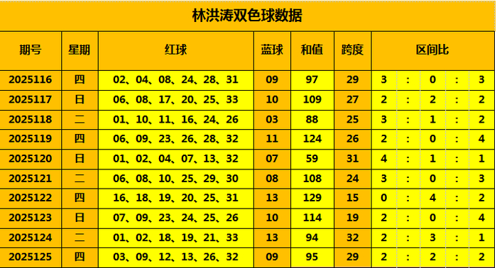 和值走势: 上期奖号和值为95,最近十期和值分离为97、109、88、124、59、108、129、114、94、95,最近十期和值散布在59-129之间。空洞分析本期瞻望单挑一注红球和值出当今103傍边。 跨度分析: 上期跨度29,较前一期着落3个点位,近10期跨度分离为29、27、25、26、31、24、15、19、32、29,本期瞻望跨度着落,关爱跨度出当今27傍边。 三区定位分析: 红一区(01-11):最近10期该区开出23个号码,上期开出2个奖号03、09,出号较温,本期瞻望转冷,关爱1个号码02。 红二区(12-22):最近10期该区开出13个号码,上期开出2个奖号12、13,出号较温,本期瞻望转热,关爱3个号码12、16、20。 红三区(23-33):最近10期该区开出24个号码,上期开出2个奖号26、32,出号较温,本期瞻望保温,关爱2个号码24、29。 蓝球走势分析:
