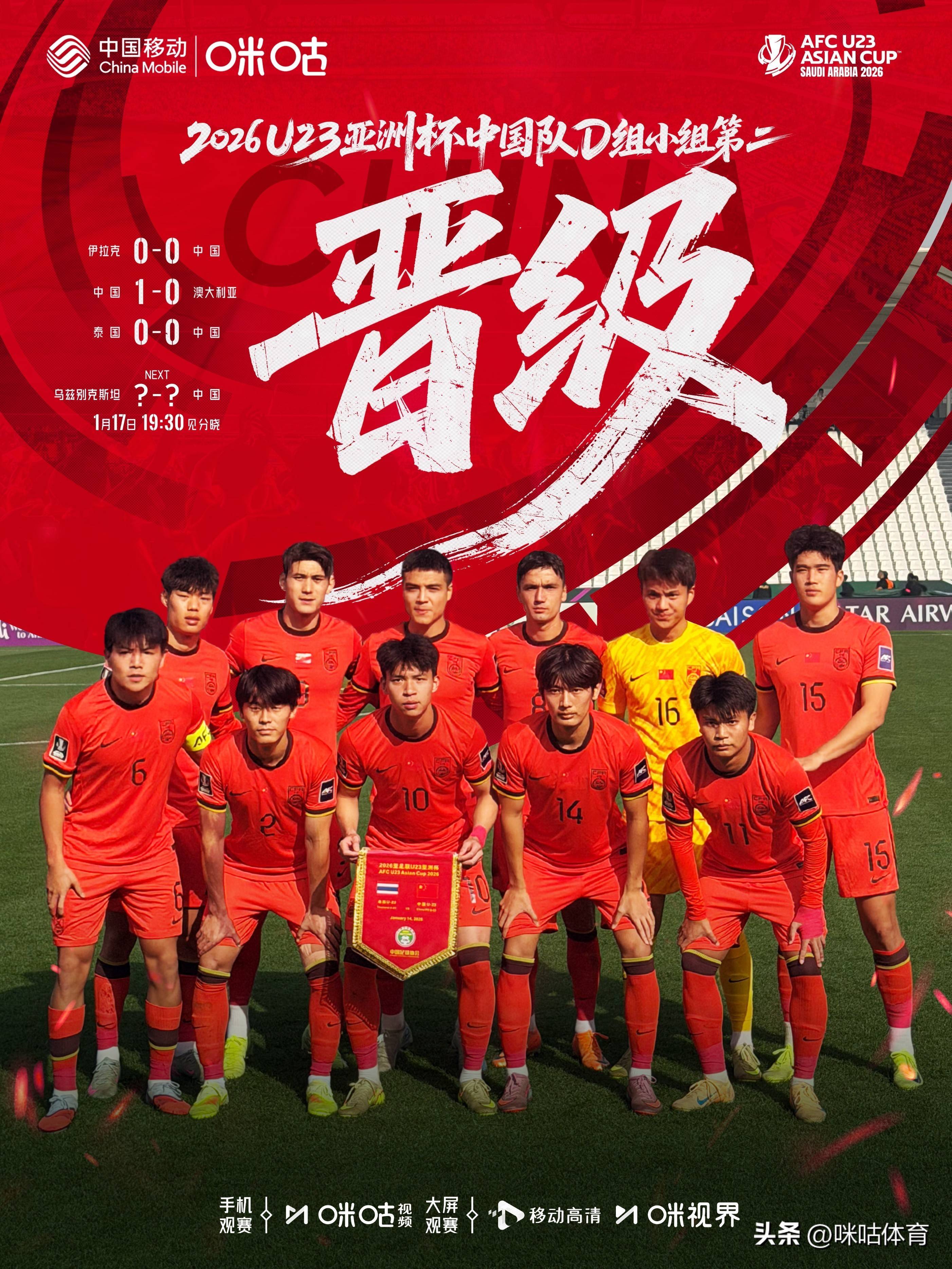 中国队与乌兹别克斯坦的1/4决赛将在1月17日19:30打响。看U23亚洲杯上咪咕,陆续怜惜中国队的发达!